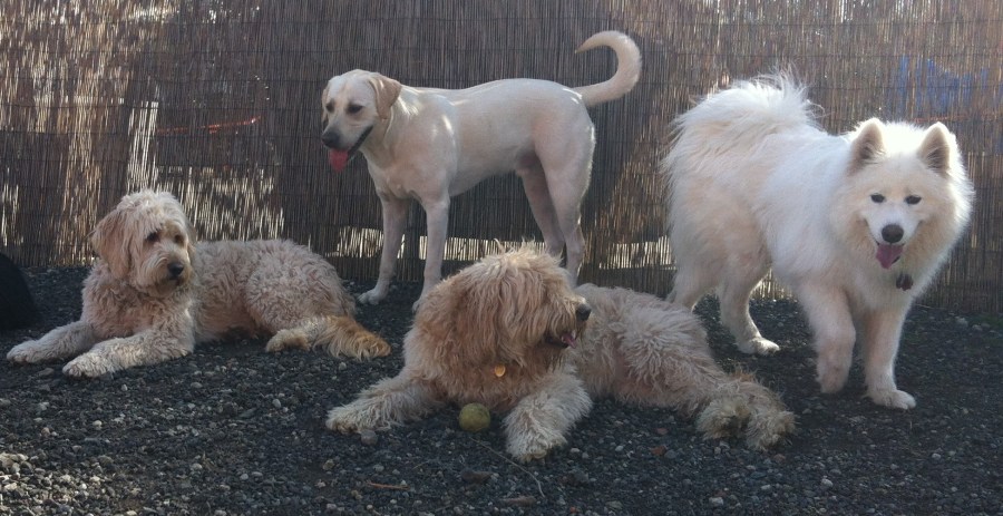 Time for a shade break Maui, Zoie, Bud Jr & Sierra