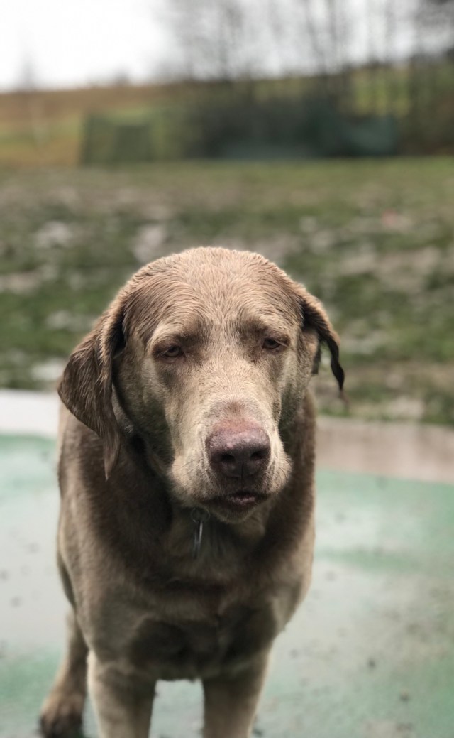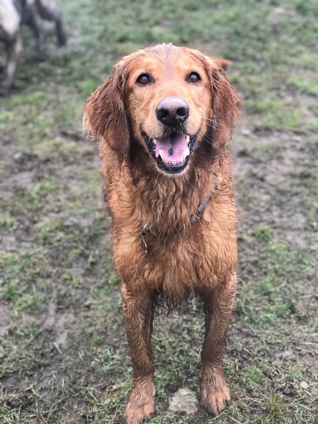 New to the Pack Mr Watson making the best of a rainy day